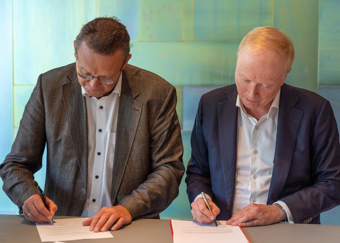 Afbeelding van Jouke de Vries en Hans Honig, CEO Deloitte Nederland tekenen de intentieverklaring.