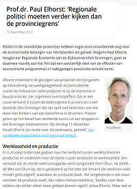 Paul Elhorst is bijzonder hoogleraar Regionale Economie aan de Faculteit Economie en Bedrijfskunde. De regionale werkloosheidsproblematiek van het Noorden is een van de belangrijkste onderzoeksthema’s bij zijn leerstoel.