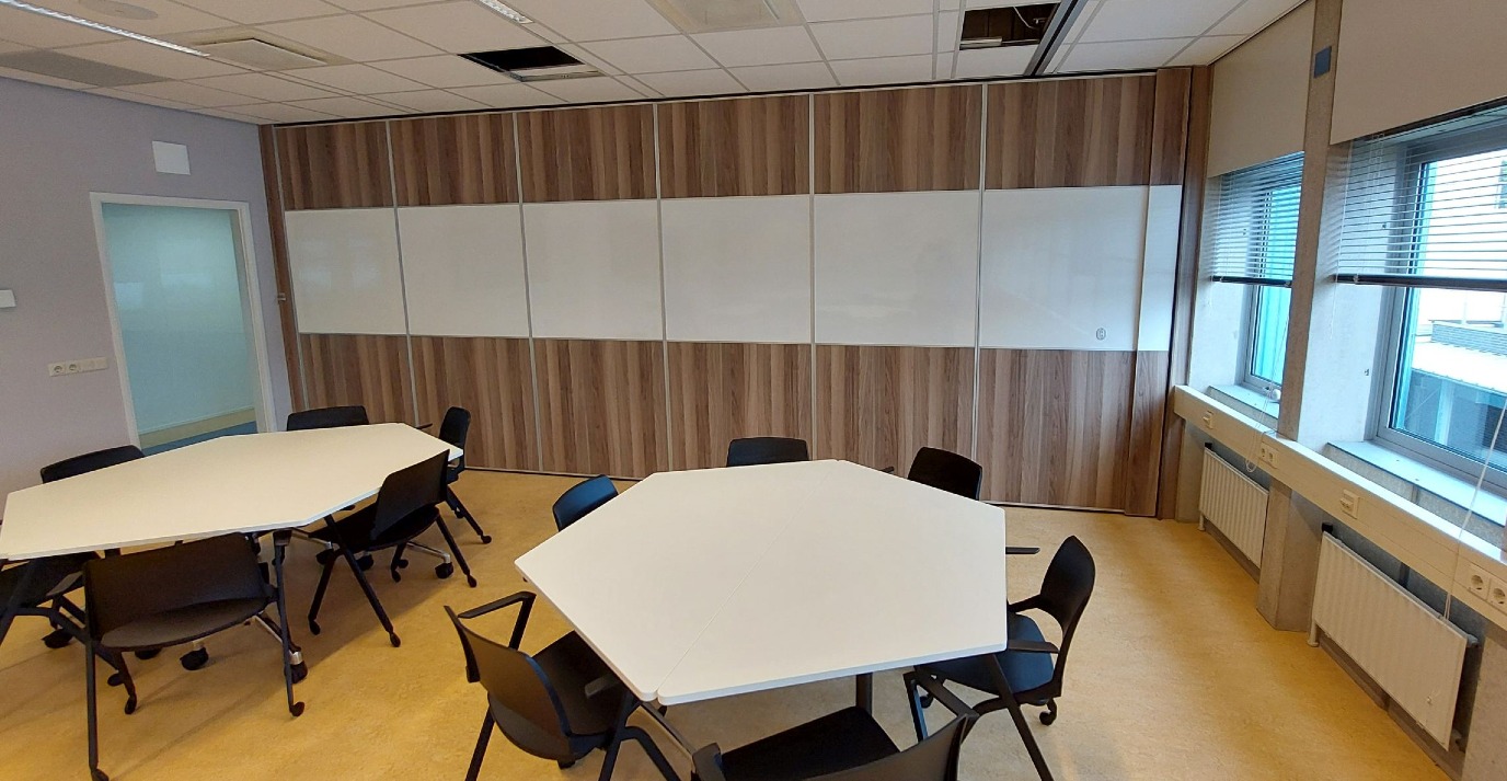 Maximaal 36 studenten. Kan gecombineerd worden met 5416.0157 voor een totale capaciteit van 72 studenten. Hiertoe kan de schuifwand geopend worden.