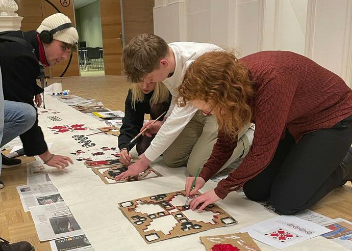 Artivism for Ukraine consisted of four art installations, each stimulating different senses and experiences. Visitors could paint Ukrainian symbols traditionally worn on clothing, listen to audio experience stories, or experience for themselves what it is like to be a refugee.