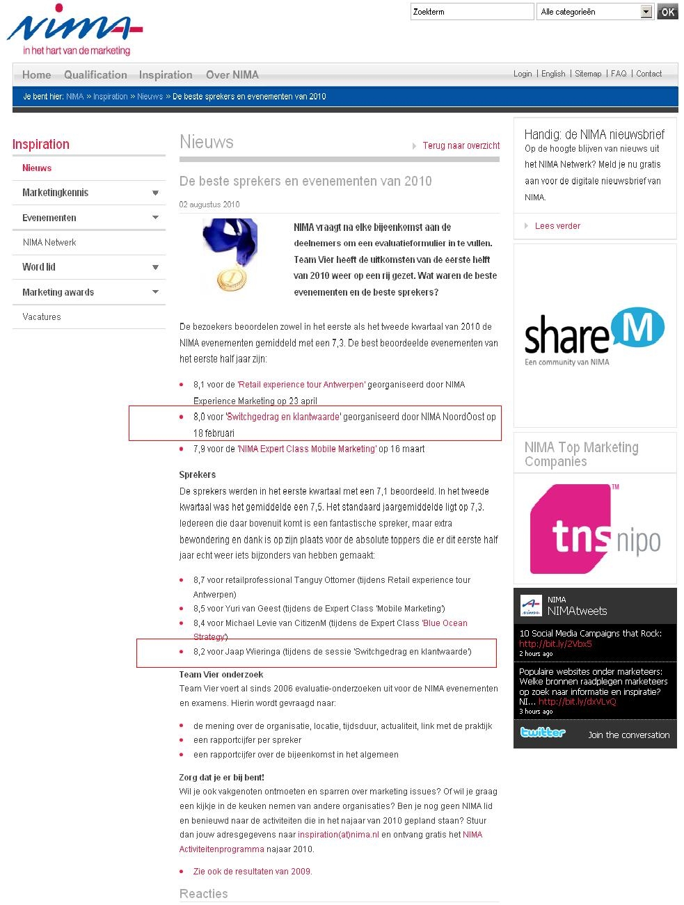 - Jaap Wieringa bij beste NIMA-sprekers (NIMA, augustus 2010)