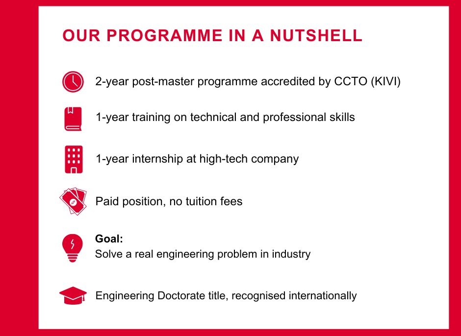 Both EngD and PhD programmes are post-master programmes where you deepen your technological knowledge. However, they differ in terms of focus.