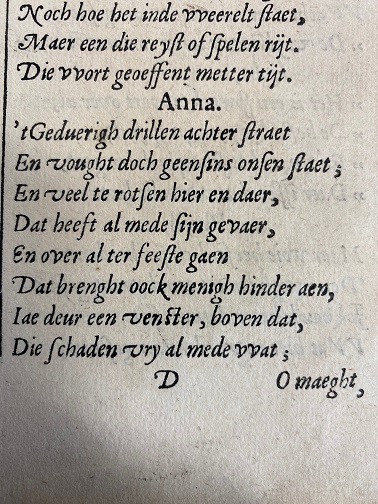 Bijvoorbeeld in het eerste deel (maeght) op pagina 25, tweede kolom, derde regel van onderen staat in C het woord “brenght”, terwijl in beide andere exemplaren het woord “brengt” staat. Ook zien we kleine andere verschillen. Om deze verschillende zetsels goed van elkaar te onderscheiden wordt bij oude drukken gebruik gemaakt van de zogenaamde vingerafdruk.