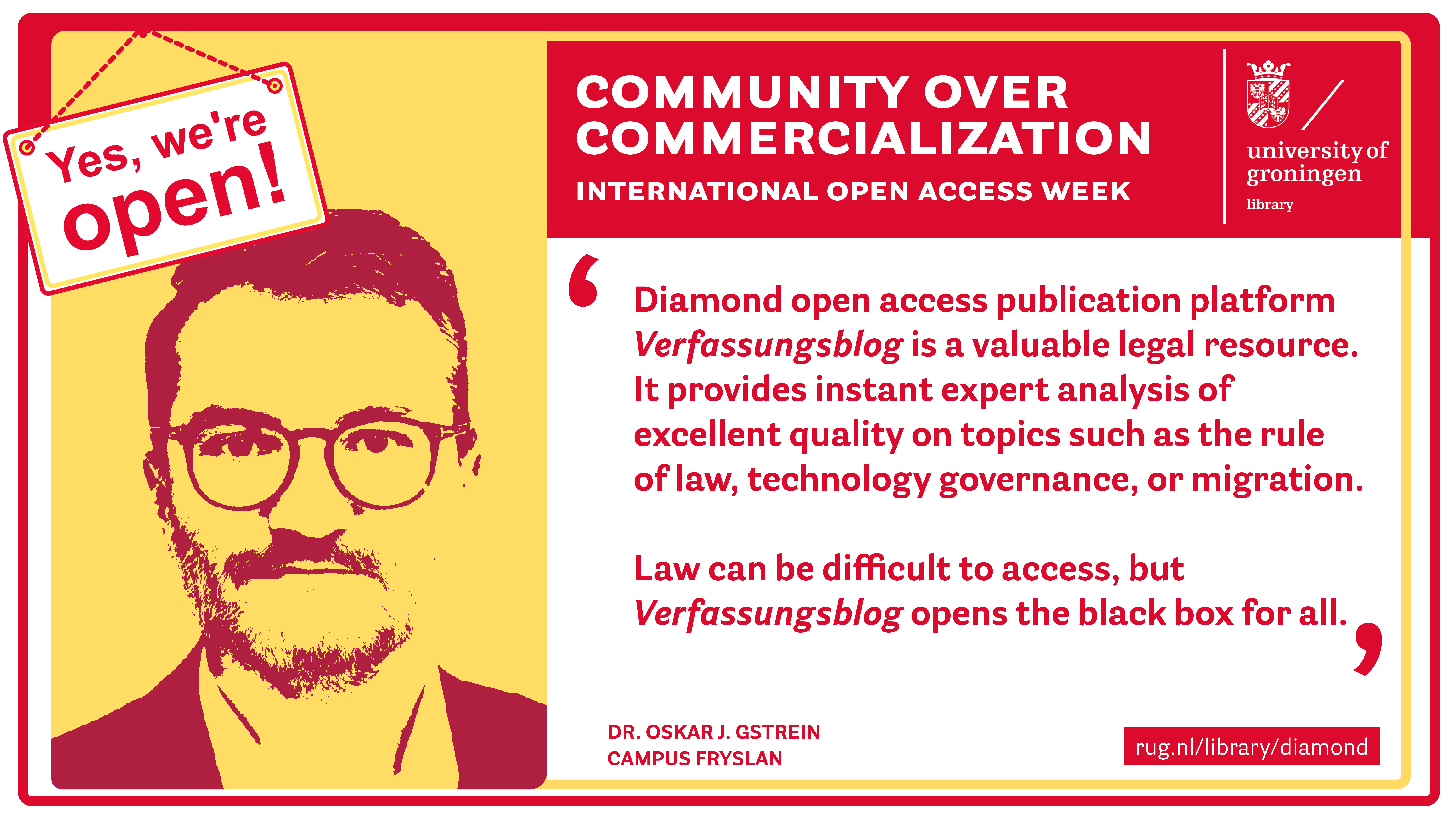I experience Verfassungsblog, a diamond open access publication platform, as unique in the legal domain: it offers instant expert analysis of excellent quality on topics such as the rule of law, technology governance, or migration. Law can be difficult to get access to, but Verfassungsblog opens the black box for all. It helped me as a student to learn about the recent trends in my domain, and allows me to keep up easily with relevant recent developments.