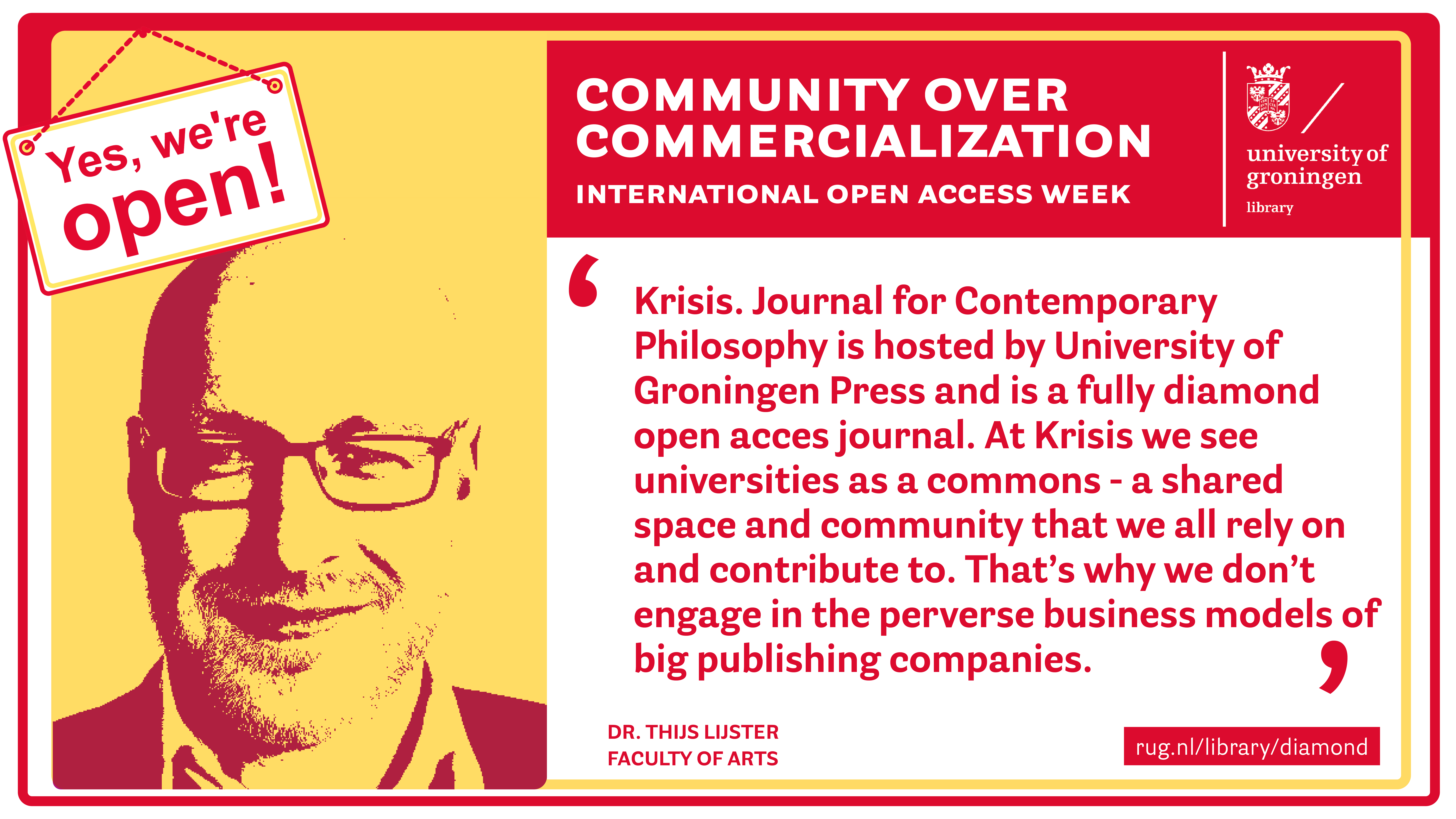 At Krisis we see the university as a commons, that is, as a shared space and community that we as all rely on for our knowledge and insights, and that we also all contribute to. It should be treated as a garden where we collectively sow and reap the ‘fruits’ of knowledge, not as a factory where cookies are packaged and sold. Also as an author myself, I try to publish as much of my academic work as possible on OA journals, for that same reason.