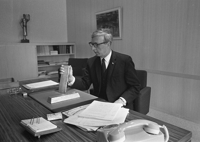 Zijlstra’s belief in strict rules led him to do his utmost to save the international Bretton Woods Agreement in 1971. As president of the BIS, he was the ideal person to represent Europe in the negotiations with the two American camps that were also deliberating the future of that system. Zijlstra was caught in the middle: the American Central Bank had chosen a pro-European course, whereas the Treasury and White House were up for confrontation. Harmsma: ‘A bit like the White House under Trump now. The mindset was: the Europeans want to screw with us, so we have to screw with them first. That’s what Zijlstra had to contend with.’