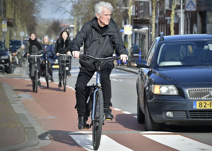 This doesn’t only apply to students, says Brookhuis. Elderly people on e-bikes are just as dangerous. ‘They turn up the speed to maximum and off they go, racing everywhere at 26 km/hour. But their reactions just aren’t up to it! The elderly should really have some kind of guidance before jumping on an e-bike. They need to slow down and give themselves time to brake. Compulsory lessons and a test wouldn’t go amiss, like you do when you want to ride a moped.’