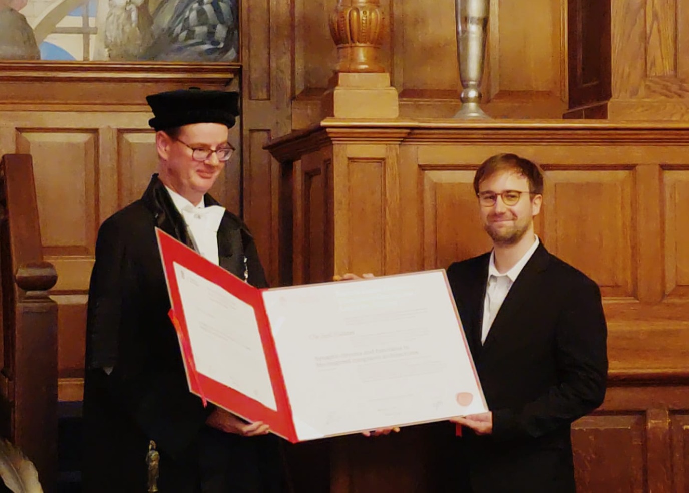 PhD candidate Ole Richter has been awarded his doctoral degree after defending his thesis, Synaptic Circuits and Functions in Bio-inspired Integrated Architectures, in the Academy Building on 15 October 2024.