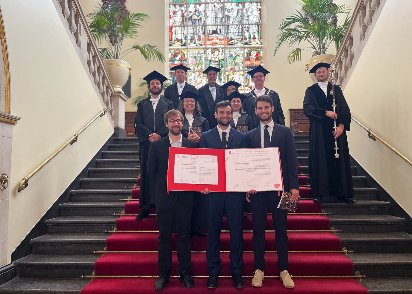 Michele Mastella, a PhD candidate in Bio-inspired Circuits & Systems at the Faculty of Science & Engineering, successfully defended his thesis on Neuromorphic Embedded Processing for Touch on 10 September 2024.