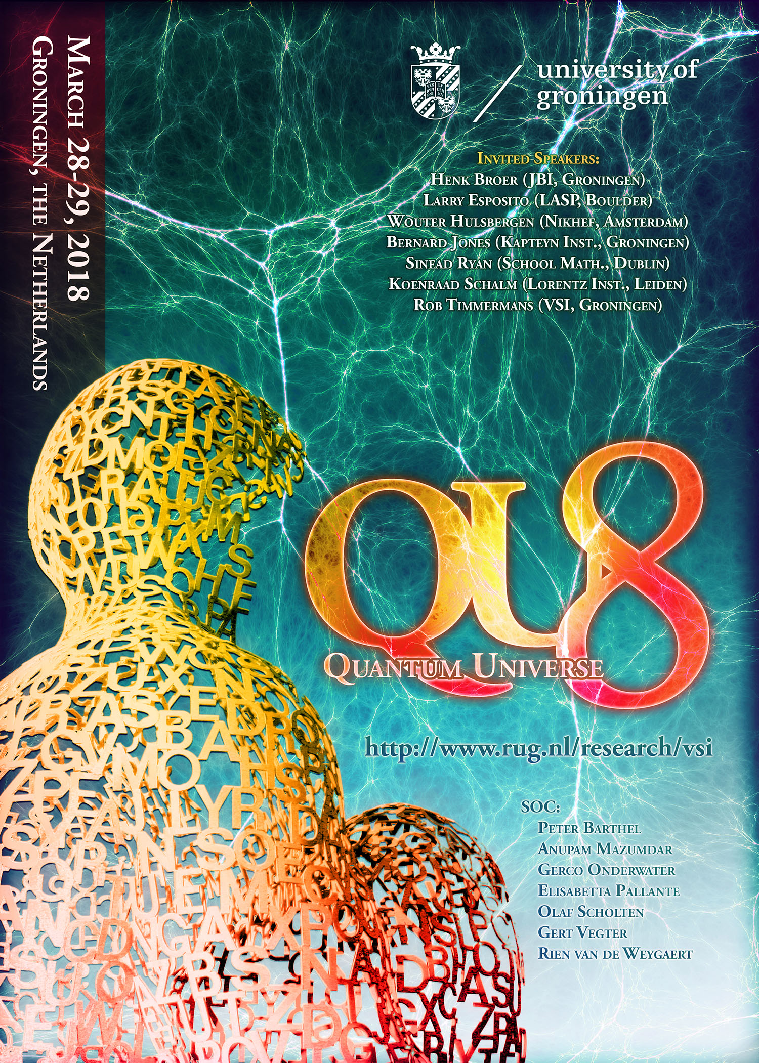 The event is part of the track "The Quantum Universe" of the Physics and Astronomy Master programmes, a collaboration between the Van Swinderen Institute for Particle Physics and Gravity (VSI), the Kapteyn Astronomical Institute, the KVI - Center for Advanced Radiation Technology (KVI-CART) and the Johann Bernoulli Institute (JBI). The aim of the symposium is to present new developments, both theoretical and experimental, in (astro-)particle physics and astronomy and to stimulate interactions between the different institutes.