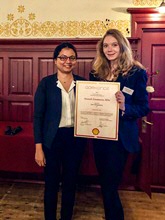RUG-onderzoeker Anouk Goossens heeft op maandag 26 november de Shell Award in ontvangst genomen. Deze prijs wordt jaarlijks uitgereikt aan drie (oud-)natuurkundestudenten. Goossens kreeg de prijs voor haar afstudeeronderzoek aan Nb-doped SrTiO3, een stof die elementen van ons brein na kan bootsen. Inmiddels is ze cum laude afgestudeerd bij de master Nanoscience en zet ze het onderzoek door in een promotieonderzoek aan de RUG.