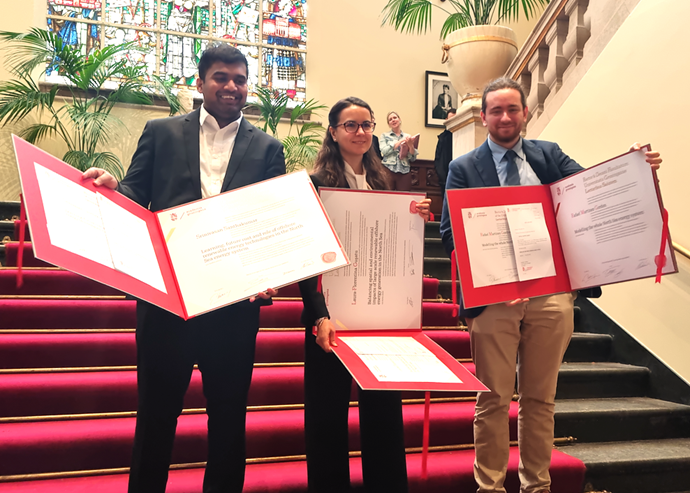 Rafael Martínez Gordón, Laura Guşatu en Srinivasan Santhakumar promoveerden dinsdag op hun onderzoek dat plaatsvond binnen het project ENergy SYStems in TRAnsition, kortweg ENSYSTRA. Het traject is gefinancierd vanuit de Marie Curie-beurzen als onderdeel van Horizon 2020, het Europese programma voor onderzoek en innovatie. Het ENSYSTRA-project richtte zich op de overgang naar duurzame energiesystemen op de Noordzee.